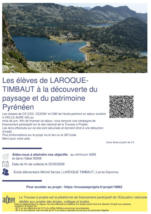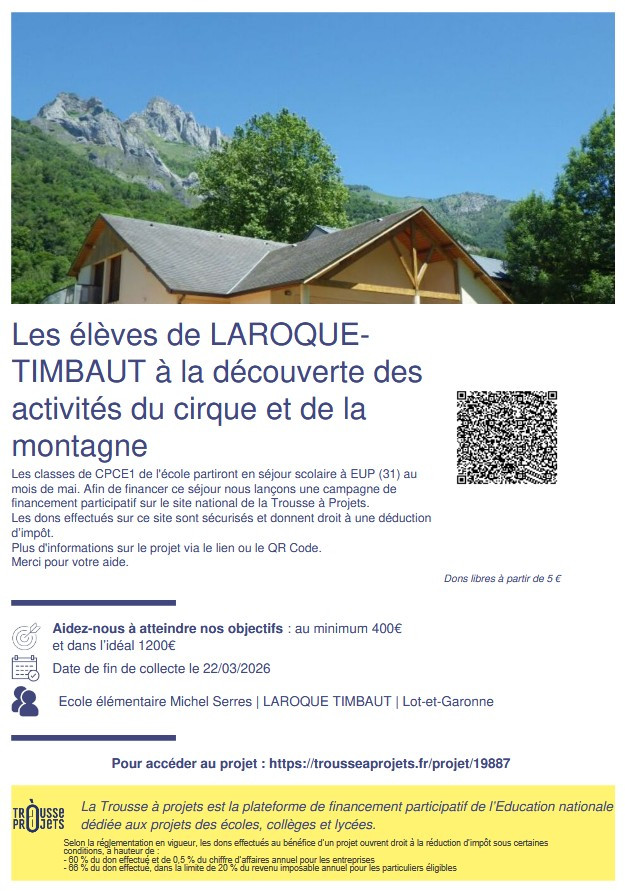Aujourd’hui, nous lançons officiellement nos collectes pour nos séjours scolaires sur La Trousse à projets, la plateforme de financement participatif de l’Éducation nationale.Vous pouvez dès maintenant découvrir et soutenir :