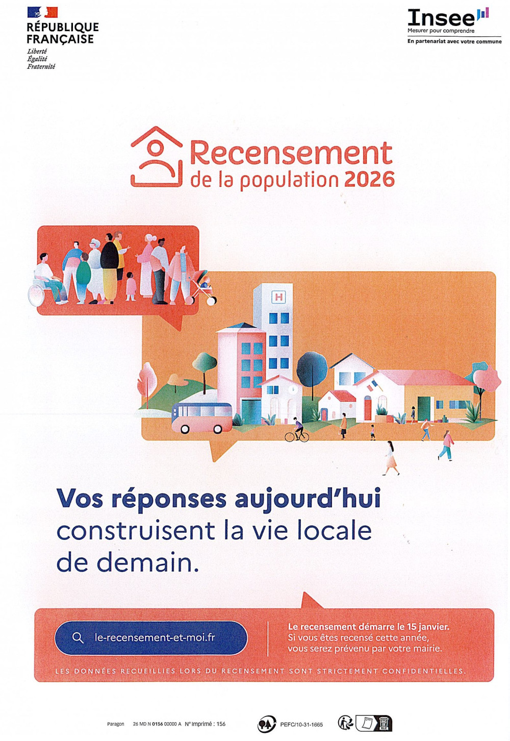 Le recensement de la population se déroulera dans notre commune à compter du mois de janvier 2026