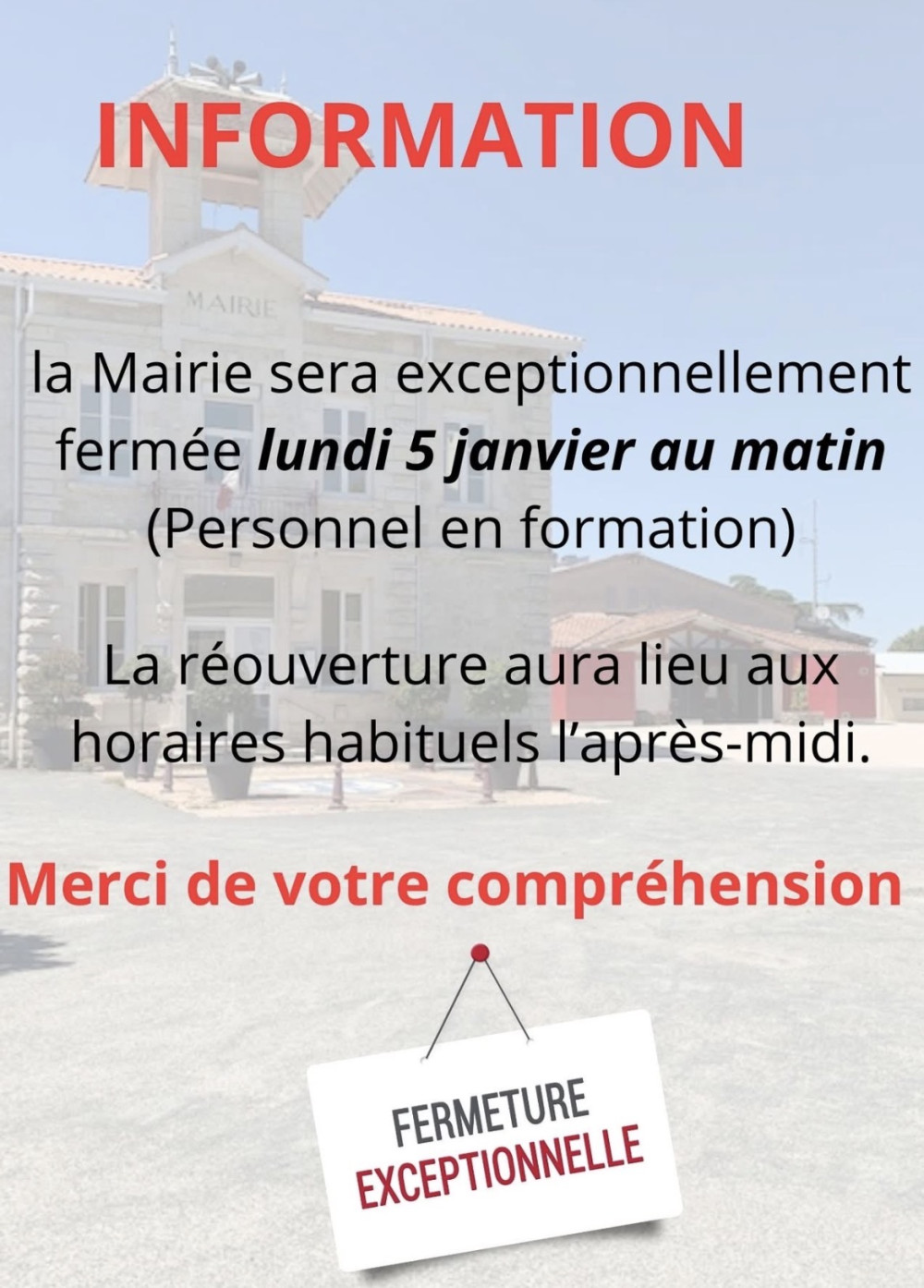 > Fermeture exceptionnelle de la Mairie